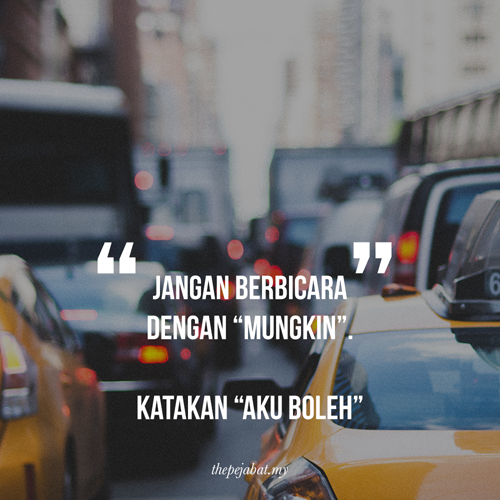 Berbicara dengan “mungkin” akan menyebabkan kita kurang keyakinan lalu tidak akan dapat mencapai apa-apa. Namun, bila anda katakan “aku boleh”, anda pasti dalam melakukan segala sesuatu.